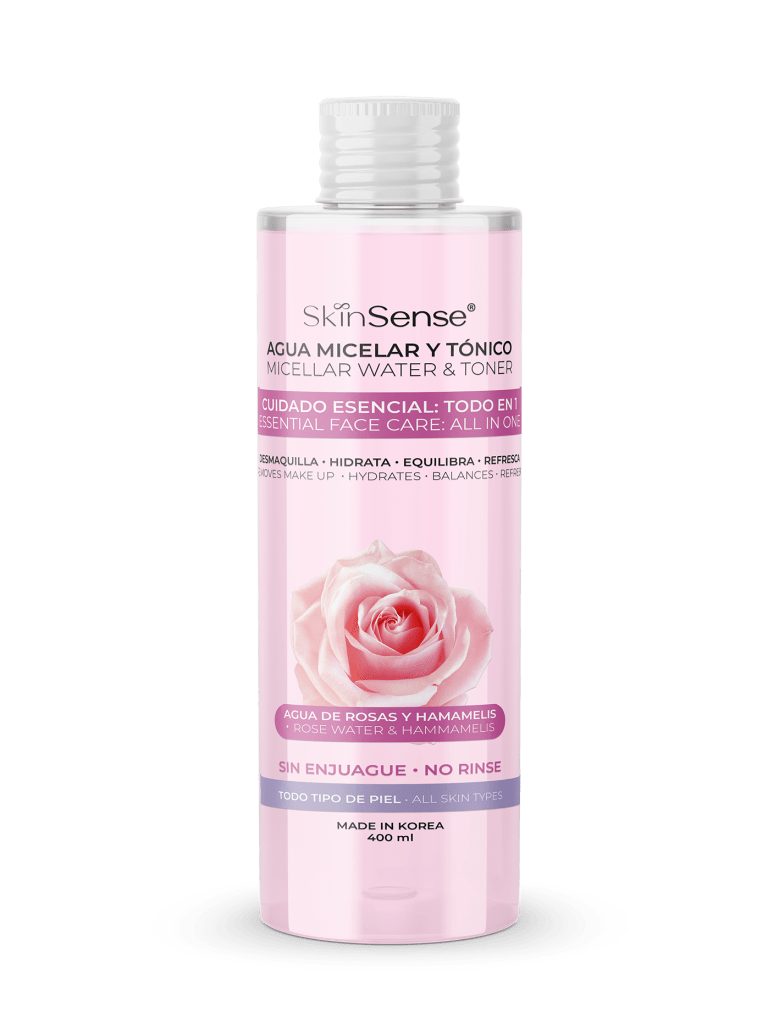 La limpieza es el primer paso fundamental para una piel hermosa. Después de un largo día de celebraciones, es esencial desmaquillarse adecuadamente. El agua micelar y tónico con Agua de Rosas y Hamamelis de de Skïn Sense es perfecta para eliminar el maquillaje, las impurezas y el exceso de grasa sin necesidad de frotar. Su fórmula suave y efectiva limpia a fondo, dejando la piel fresca y lista para los siguientes pasos de tu rutina, además cuenta con propiedades hidratantes que ayudan a equilibrar y refrescar la piel.