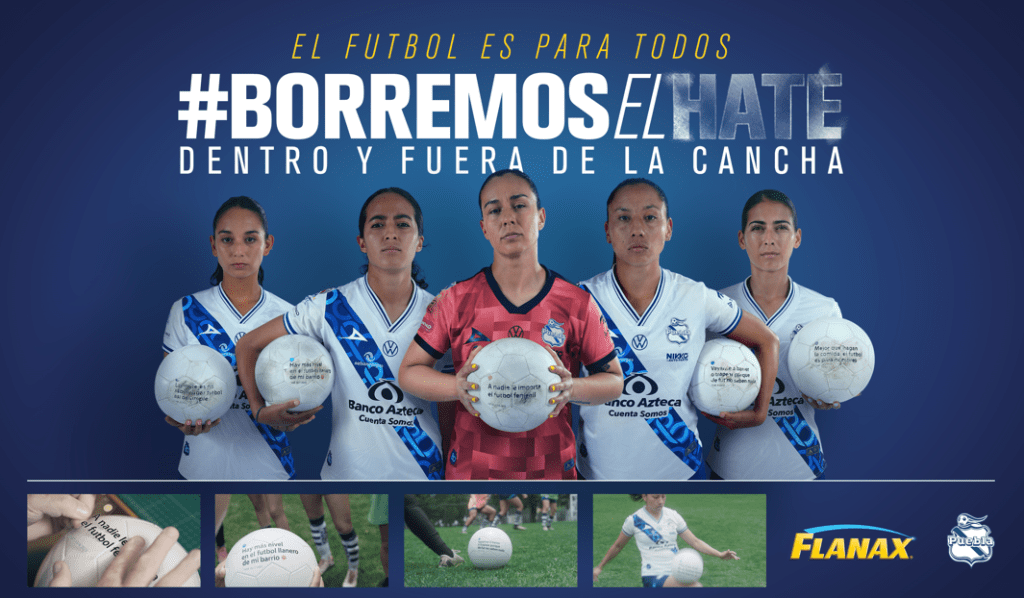 En Flanax creemos en la fuerza imparable del futbol femenil. Por eso, junto al Club Puebla de la Liga MX, lanzamos la iniciativa Borremos el Hate. Esta campaña invita a clubes, medios de comunicación y afición a unirse para eliminar el odio de las redes sociales y construir un entorno de respeto e inclusión.