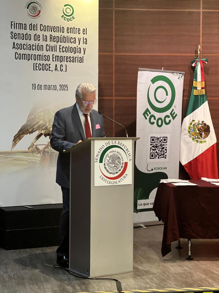 El director general de ECOCE, Jorge Terrazas, resaltó el papel clave del Senado en esta iniciativa, subrayando que el éxito de la economía circular depende del trabajo conjunto entre gobierno, iniciativa privada y ciudadanía: