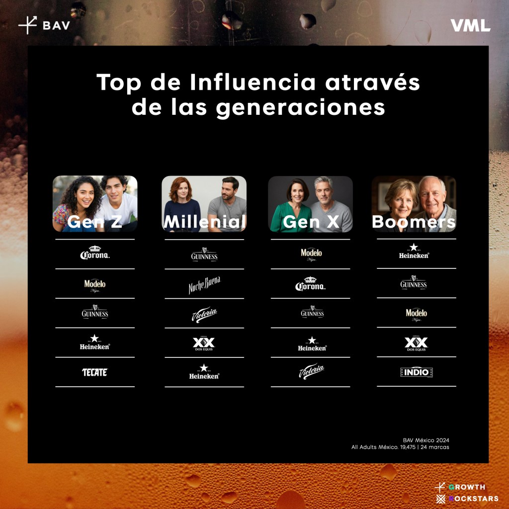 Según el estudio, las marcas de cerveza líderes en influencia cultural en México son:
