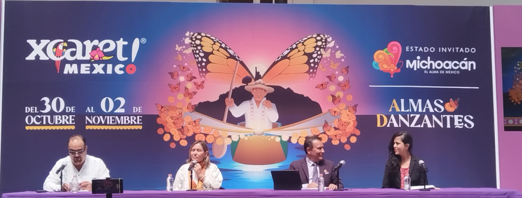En conferencia de prensa en la Ciudad de México, Leticia Aguerrebere, directora corporativa de Arte y Cultura de Grupo Xcaret dio a conocer que para la edición de este año, la delegación michoacana llegará con la representación de su tradicional ‘Noche de Ánimas’.