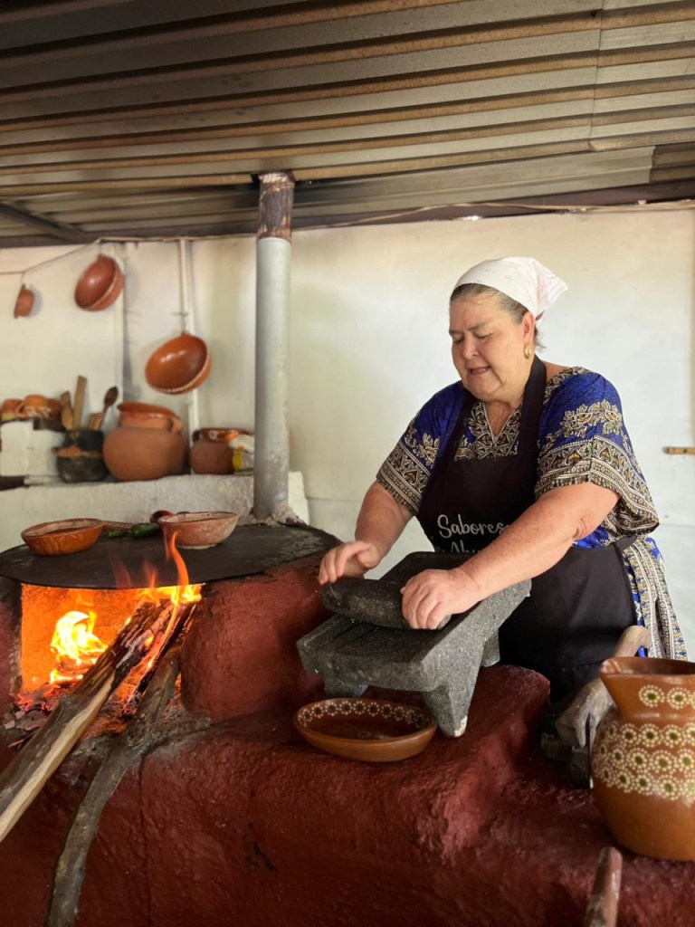 La leña para el fogón, el metate para moler el maíz con cal o con ceniza para hacer una deliciosas tortillas y el molcajete para una salsa martajada son los protagonistas para que los guisos adquieran un sabor realmente exquisito.