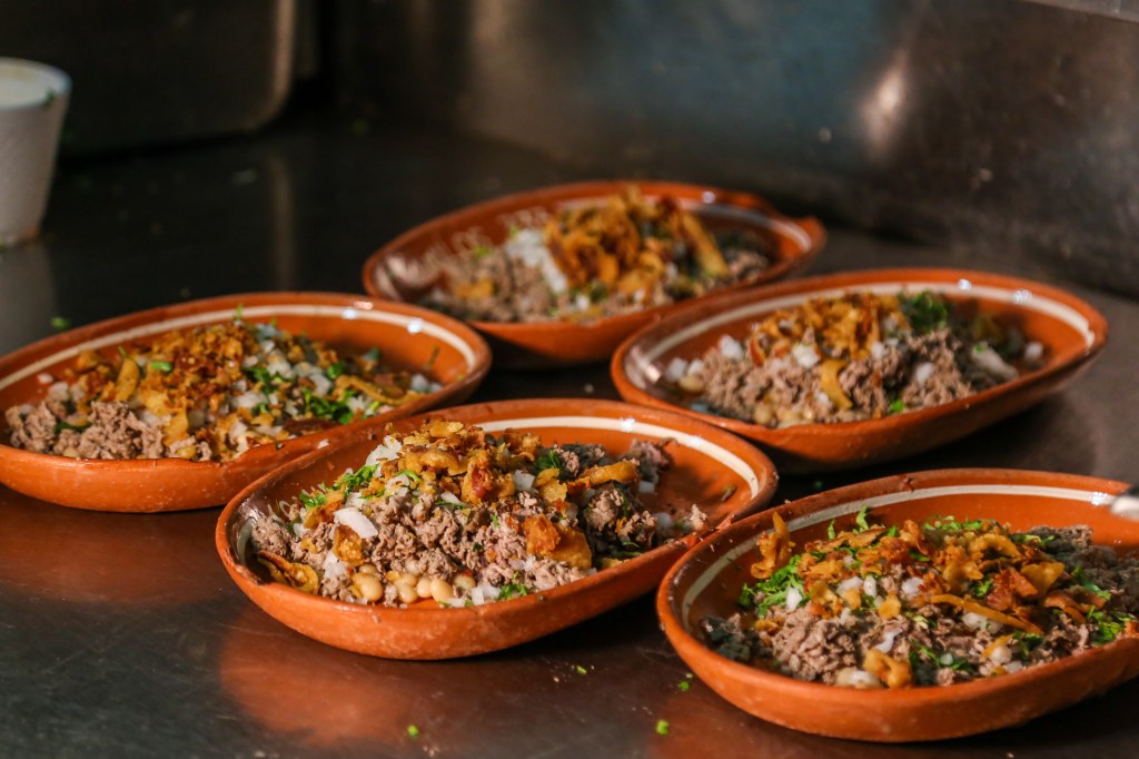 Carne en su jugo: Un guiso de carne de res picada cocinado con su propio jugo mezclado en caldo de tomate verde, afirmamos que te despertarán tus papilas gustativas. Se sirve con trozos crujientes de tocino, cebolla y cilantro. Te aseguramos que el mejor lugar para degustar es en “Karne Garibaldi”, un dato curioso de este local es que cuentan con un récord Guinness por tener el servicio más rápido de 13,5 segundos.