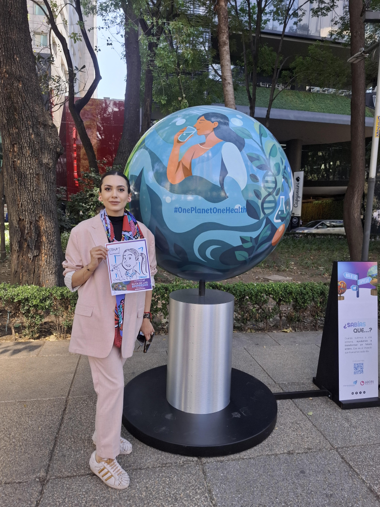 “La obra parte del concepto ‘Ciencia que nutre, vida que florece’. En la vista frontal se representa la comunidad y la naturaleza como elementos de equilibrio y bienestar, mientras que en la parte posterior se refleja el papel de la innovación, la ciencia y la tecnología como impulsores de la nutrición, la hidratación y la sostenibilidad. Para mí, es valioso transmitir esta visión a través del arte, como una forma de acercar estas acciones a las personas”, explicó Perla Garrido, artista de la obra.