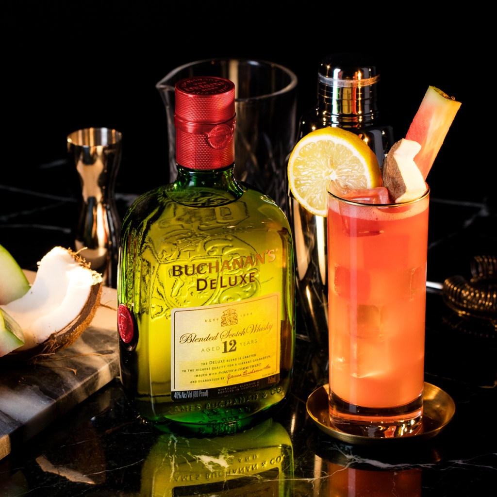 Sandía, coco y cítricos construyen un perfil refrescante junto a Buchanan’s DeLuxe 12 años.