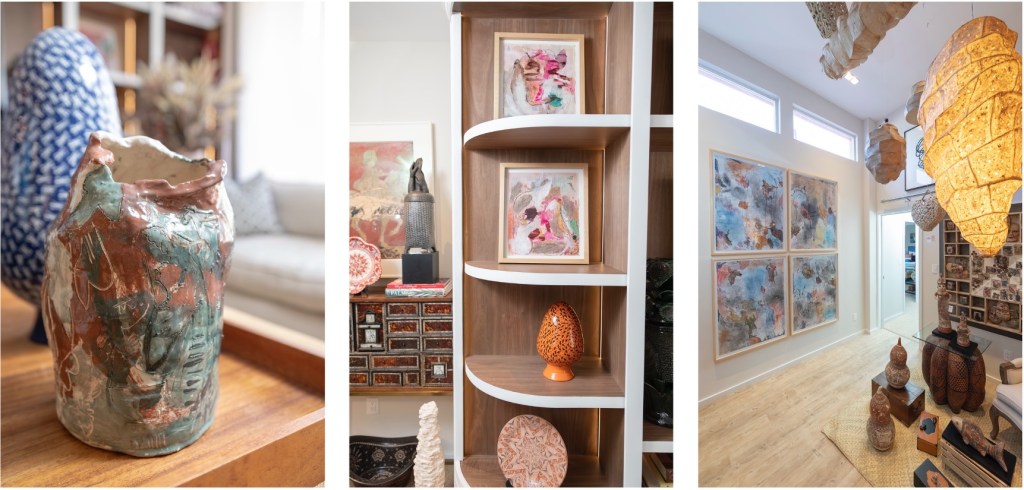 La cerámica, presente también en el trabajo escultórico de Sofía Gallo, establece un puente directo con el universo Huakal. En estas piezas, la rigidez del material se transforma en posibilidad expresiva, recordándonos que incluso lo más sólido puede mutar. Pintura y escultura se entrelazan en un lenguaje común que habla de naturaleza, permanencia y cambio.