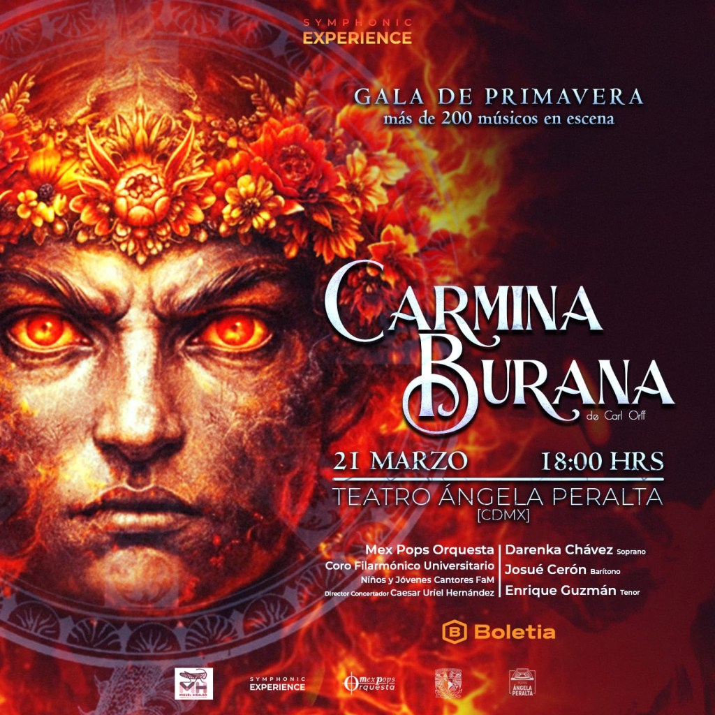 La primavera llegará acompañada de una experiencia musical monumental. Carmina Burana, la poderosa obra del compositor alemán Carl Orff, regresará a la Ciudad de México en una espectacular Gala de Primavera que reunirá a más de 200 músicos en escena el próximo 21 de marzo en el emblemático Teatro Ángela Peralta.