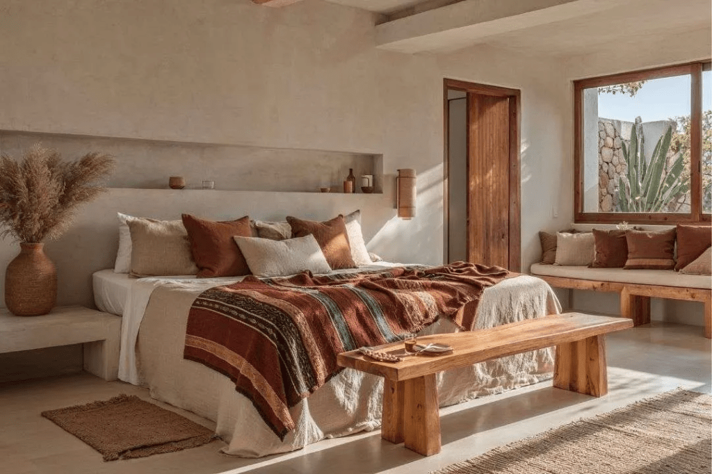 ● Artesanías de alta gama: integrar elementos de barro negro, obsidiana o textiles de telar de cintura en detalles arquitectónicos como luminarias o paneles divisorios crea una conexión emocional con el espacio.