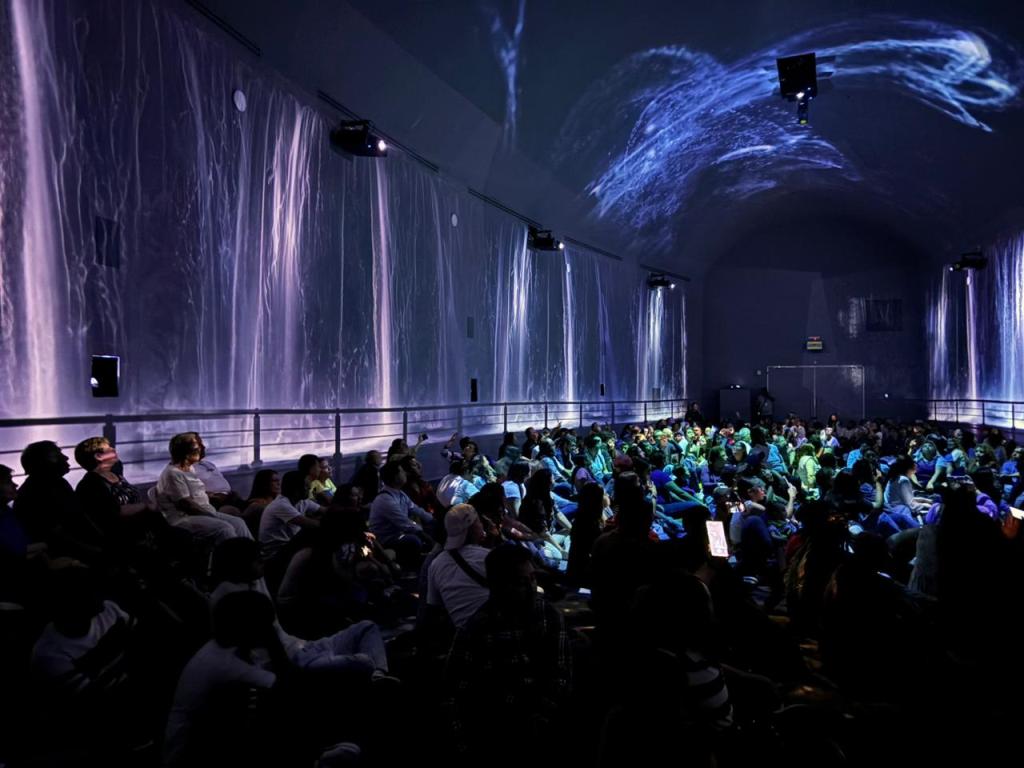 Aquïfera es una proyección envolvente 360° que nos muestra las diferentes formas del agua, vida marina y ecosistemas de una manera emotiva y significativa, misma que se ha posicionado en estos días entre las atracciones favoritas e imperdibles de sus visitantes.