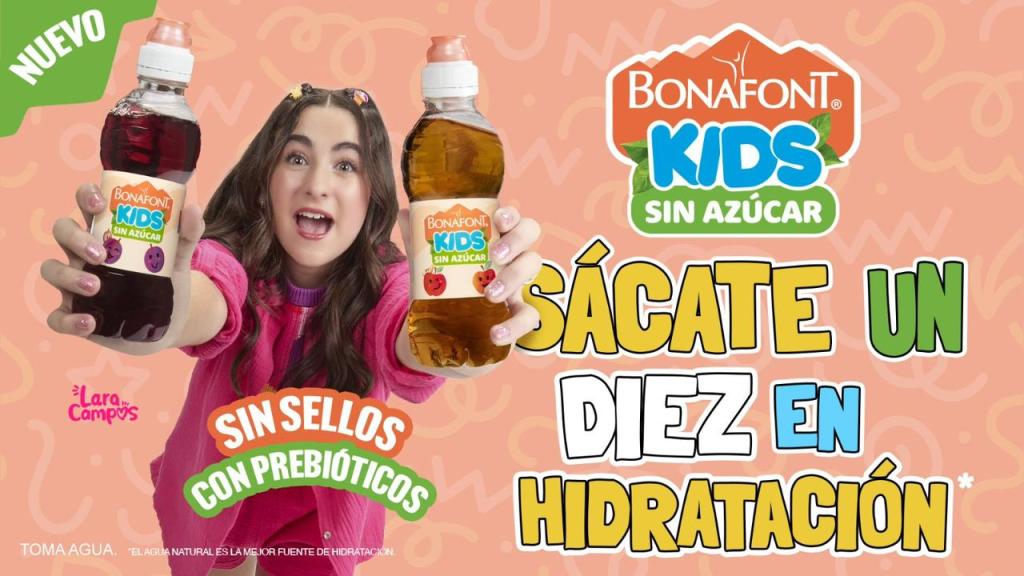 Como parte de esta iniciativa, Bonafont incorpora a Lara Campos como nueva embajadora de la campaña, fortaleciendo la conexión emocional y la afinidad con las audiencias más jóvenes, al tiempo que impulsa mensajes positivos en torno a la hidratación y los hábitos saludables desde la infancia.