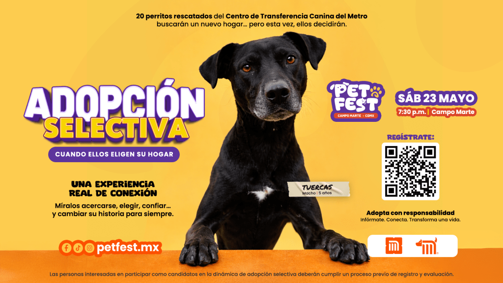 En colaboración con el Centro de Transferencia Canina del Sistema de Transporte Colectivo Metro, el evento integrará la iniciativa “Adopción Selectiva”, un ejercicio que busca transformar la manera en que se generan los vínculos entre animales y personas.